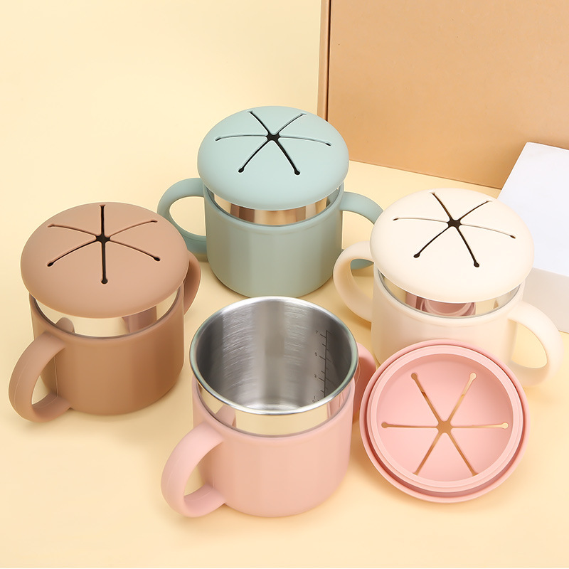 3-in-1 Silicone Stainless Steel Snack Cup | Leakproof Infant Snack Keeper for On-the-Go The only snack cup you’ll ever need for mess-free outings Product Overview For parents tired of juggling multiple snack cups and drink containers, this 3-in-1 silicone snack cup is the ultimate solution. Designed to prioritize snack time, it serves as a secure infant snack cup and snack keeper, eliminating the need for bulky silicone snack containers and stainless steel snack pots. Built with a food-grade silicone exterior and a stainless steel inner liner, it combines the durability of stainless steel snack containers with the soft, non-slip grip of silicone —making it a safe, long-lasting upgrade to basic snack cups. The included spill-proof lid transforms it into a snack cup with lid that locks in freshness and prevents crumb spills, while its dual handles let tiny hands hold it independently. Beyond snacks, it seamlessly converts to a silicone sippy cup or silicone straw cup for hydration, r…