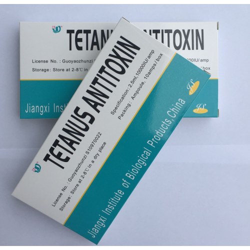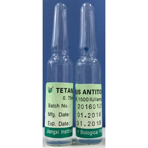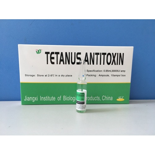 Jiangxi Institute of biological products Inc. is a biopharmaceutical company specializing in the production and research of antitoxin (Serum) biological products. The main product is tetanus antitoxin with two domestic registered dosage: 1500IU/ampoule and 10000IU/ampoule. It is one of the most prominent manufacturers of Biochemical, covers 28 provinces all over China with a domestic market share over 70%, and Egypt, and also sells to overseas as follows: Philippines, India, Cambodia, Nigeria, Thailand, Syria, Algeria, Pakistan, Ethiopia, Guinea, Liberia, South Africa and etc. [Ingredients]Equine tetanus immunoglobulin following pepsin digestion [Pharmacological action]The product contains specific antibodies which have the power of neutralizing tetanus toxins. [Indications]The product is used for the prophylaxis and therapy of tetanus. [Quality Standard]CP2020 [Specifications]1500IU/0.75ml
