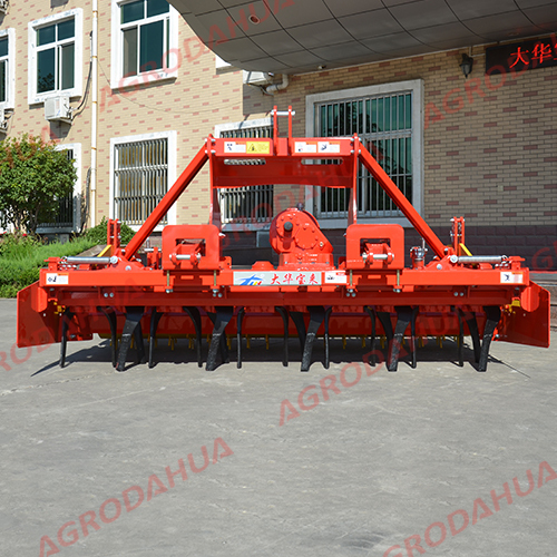 Product introduction 10-100HP tractor drived rotary tiller adopt low mid-gearbox, Eight module gear transmission, the height of gearbox can be match with 40-80hp tractors, the Angle between cardan shaft and horizontal plane is about 10 degrees which can effectively improve the cardan shaft drive efficiency and reduce the damage of transmission shaft. Knife shaft is made by ø80 heavy seamless steel pipes and connected by new flange, install self-aligning bearings on both ends of knife shaft, can automatically adjust the decentraction of knife shaft. Using 65 mn, IT245 type rotary knife, its ability of crumbling soil is strong, rotary one time once can achieve the effect of general plough works several times. Good regional adaptation, it can realize multiple cropping rotation speed of 220-320 r/min when the PTO is 720 r/min by changing different ratio of a pair spiral bevel gear. Hanging mode of the machine adopt gantry suspension, the whole framework in one integrated mass,…