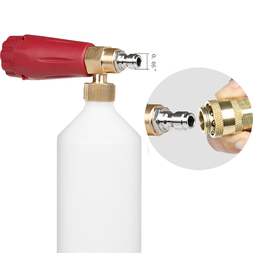 The foam lance has pure copper foam lance body, which can flexibly regulate duck billed slice. It can resist corrosion while carrying greater output pressure, and quickly adjust the concentration and angle of the foam. It has good sealing ability to ensure that the foam liquid will not leak, and can be used with high pressure cleaner of 800-3800PSI. Application When you are using it, you can adjust the top foam volume control knob to achieve a proper foam effect, provide gentle cleaning for your car, and also apply to the required clean gaps and furniture. 220bar car wash snow foam cannon 0.22gal Item No. MOF006 Size 17*26*10cm Material Solid Brass, Resistant Nylon, HDPE Bottle,Nilfisk Color White&Blue(Customized…