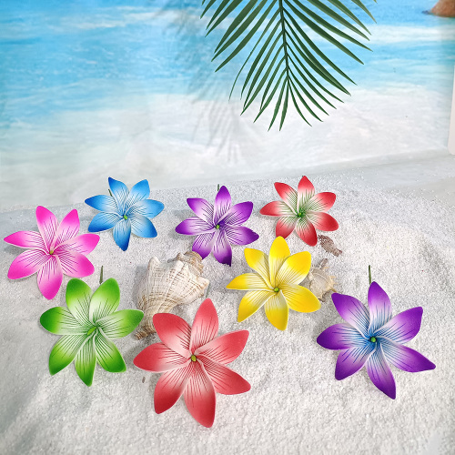 Description This flower tiare is made out of foam & plastic material that is so LIGHT. it is very soft and FLEXIBLE, and likes a real flower. Place on a 3" stem used over your ear or in your hair or on the hat. suitable for daily decoration, all of the parties, or other special events. it is so easy to add the clip as you like Specification Item #: KN-hf047S Color: 8 colors as picture showed Size:3 1/2" (approx. 9 cm) the color and size can be customized as customers like Note The real color of the item may be slightly different from the pictures shown on the website caused by many factors such as brightness of your monitor and light brightness. More pictures