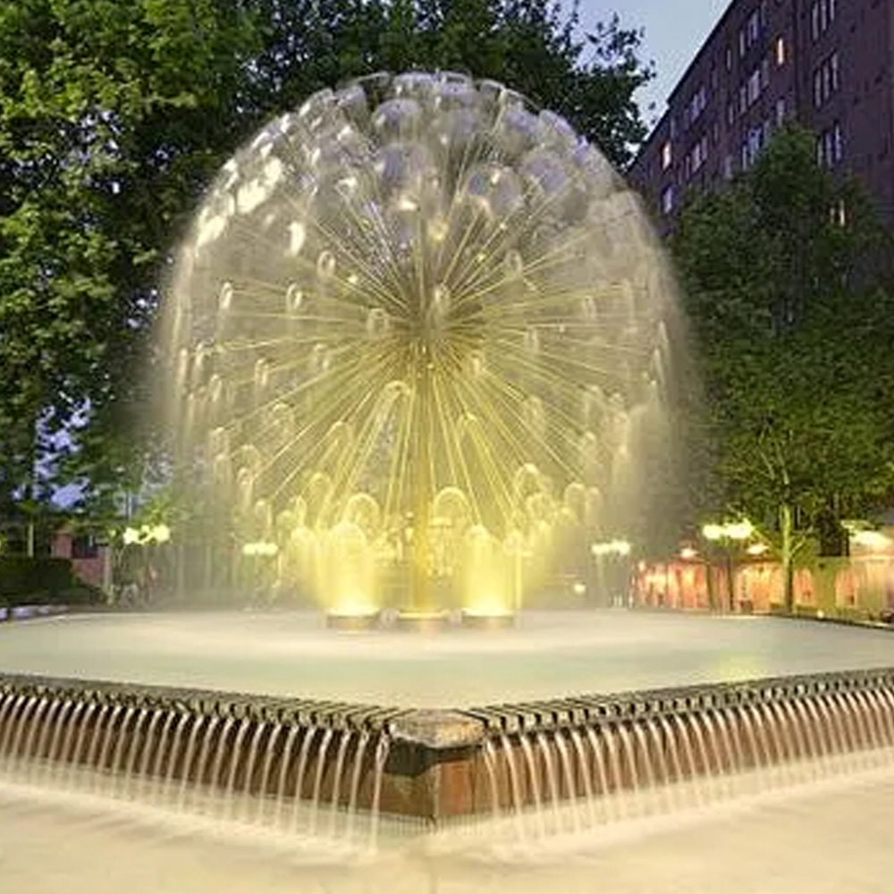 Dandelion-shaped water fountain Dandelion-shaped water fountain is a creative fountain inspired by natural forms, suitable for park lawns, garden corners, street landscape areas, etc. The main body adopts biomimetic design, presenting a dandelion flower cup shape with a diameter of 0.8-2 meters that can be customized. It is equipped with fine-hole nozzles, and when the water flows, it is as light and lively as a dandelion flower, enhancing its appeal as water fountain decor. A warm white LED light string is hidden at the edge of the flower cup, and when lit at night, it creates a dreamy and soft light atmosphere. The material is 304 stainless steel, with an IP67 waterproof rating. With its small and exquisite design, it is suitable for small-space arrangements and is a creative water feature choice that combines both ornamental value and fun. Product Paramenters Product type Water fountain Model No DW-251027 Power customize Size customize…