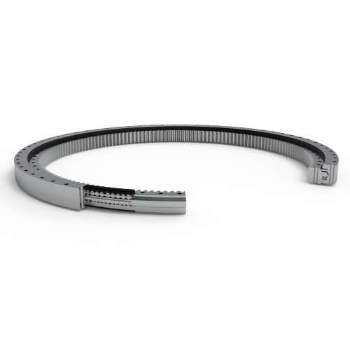 The three-row cylindrical roller slew bearing with toothed inner ring is the core supporting component in the field of heavy-duty machinery. It consists of an inner ring with an inner ring gear, an outer ring and three rows of independent cylindrical rollers. It integrates super load-bearing and direct power transmission functions. It has a compact structure and is adaptable to complex working conditions. Its core advantages are reflected in two points: First, three rows of rollers are divided into load-bearing units. Two rows of axial rollers are dedicated to bear bidirectional axial loads, and one row of radial rollers bear radial loads. The line contact design evenly distributes the load, and can effectively withstand huge axial force, radial force and tilt. The overturning moment and load-bearing capacity are much better than those of single-row or double-row structures; secondly, the inner ring gear transmission**, the precision ring gear processed in the inner ring can directly m…