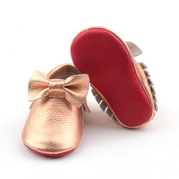 Soft Leather Baby Girl Moccasins with Bow