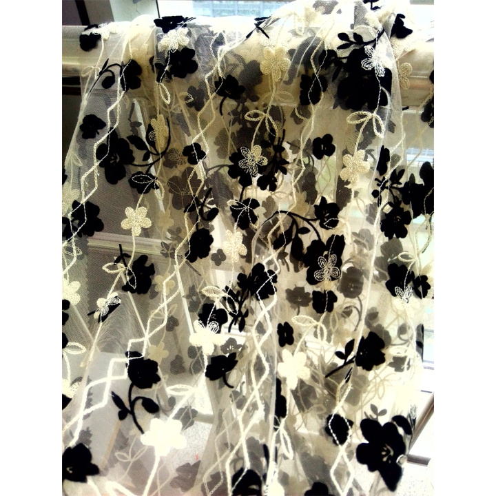 mesh flocking embroidery fabric