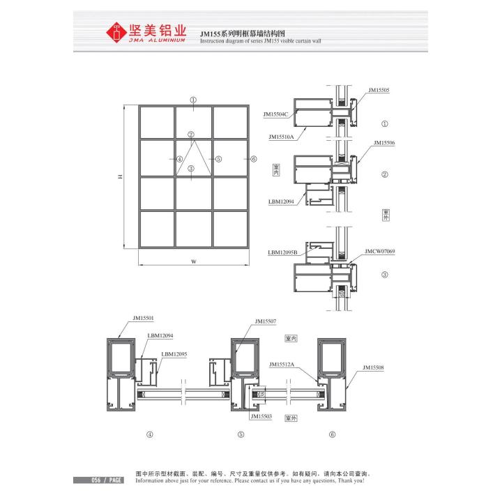 Modern JM155 Visible Frame Aluminum Curtain Wall Profiles