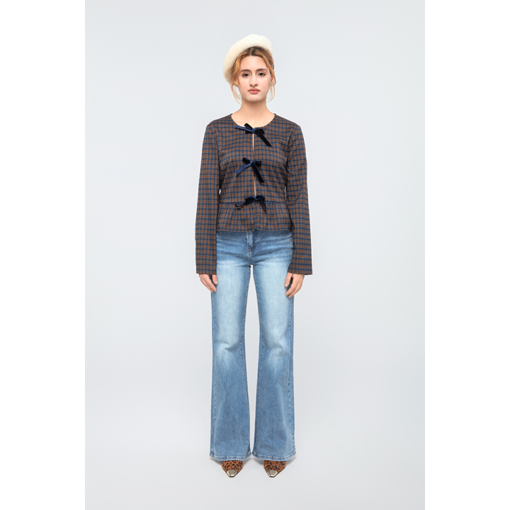 Elegant Bow Round Neck Casual Jacket for Stylish