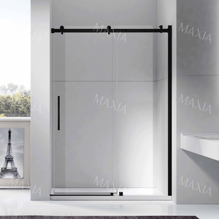 Black Bathroom large pulley sliding shower screen