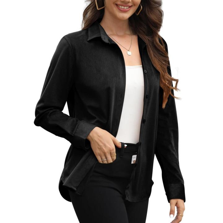 Super Soft Corduroy Button Up Long Sleeve Shirts V Neck Blouses Tops Fall Clothes for Women XS-XXL