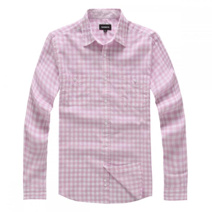Men's Double Pockets Pink White Checked Shirts
