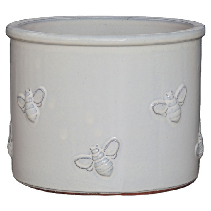 Outdoor Ceramic Glazed Flower Pot Cylinder Bee Pot