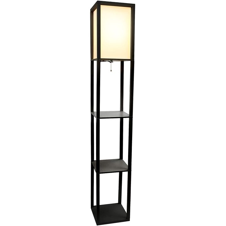Black storage rack floor lamps
