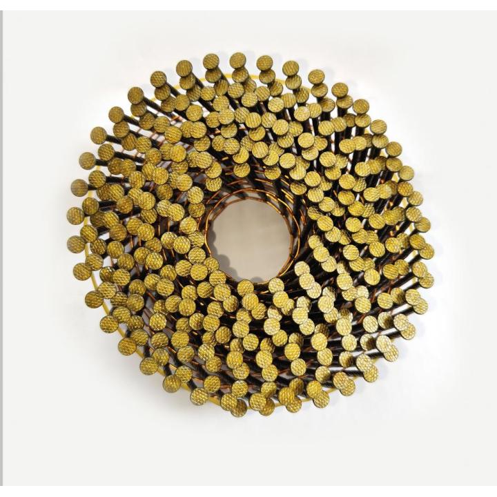 Three section thread, yellow paint, small cap coil nail
