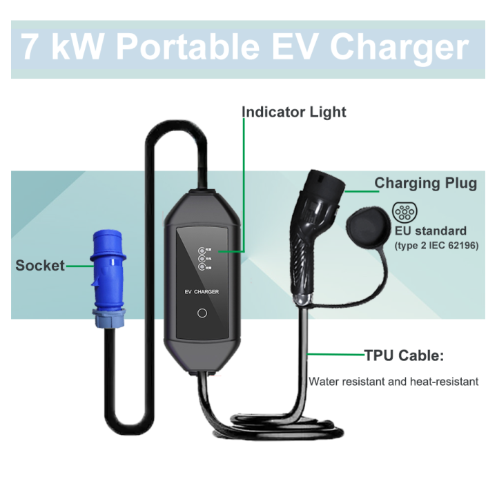 7kw Portable Ev Charger Led Display OEM ODM
