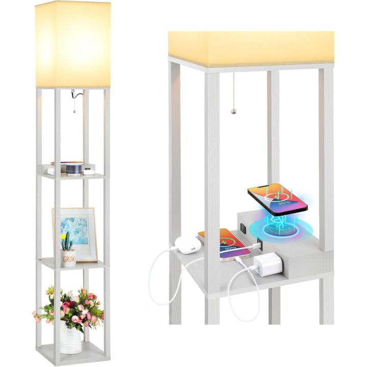 Shelf floor lamp with wireless charger and USB